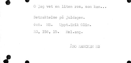 //// O jag vet en liten ros, som kan... //// Betraktelse på juldagen. 6:6. NB. Uppt.Erik Olin. R3, 158, 15. Me 1. ang . //// ÅBO RANCK2N MS ////