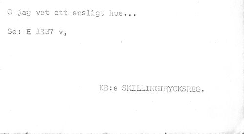 //// O jag vet ett ensligt hus... //// Se: E 1837 v, //// 9 //// i //// « //// | //// I 1 //// i //// KB:s SKlLLINGTRYCKSREG. //// [M./ 1 i ////