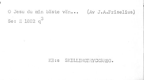 //// , //// O Jesu clu min bäste vän... (Av J.A.Friselius) Se: E 1882 //// i //// KB:s SKILLINGTRYCKSREG. ////
