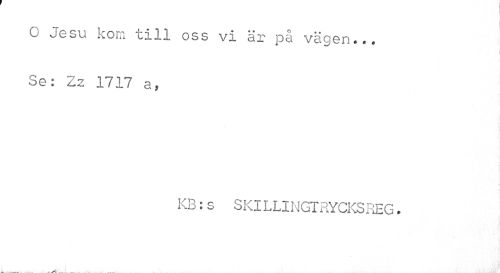 //// O Jesu kom till oss vi är på vägen... //// j //// Se: Zz 1717 a, //// KB:s SKILLINGTRYCKSREG. //// .. ... ^s**. ' ... ////