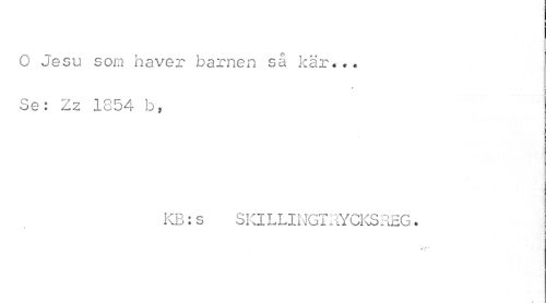 //// O Jesu som haver barnen så kär... Set Zz 1854 b, //// KB:s SKJ LLINGTRYCKSREG. //// \ ////