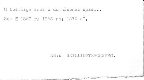//// O kostliga snus o du näsones spis... //// w Å //// Se: E 1367 r; 1868 nnj 1370 c°, //// KB: s S1 Cl LLINGTRYCKS REG. ////
