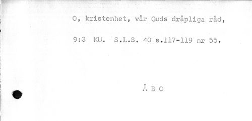 //// iiy in j y.::. • //// O, kristenhet, vår Guds dråpliga råd, 9:3 KU. S.L.S. 40 s.117-119 nr 55. //// y //// A B O ////