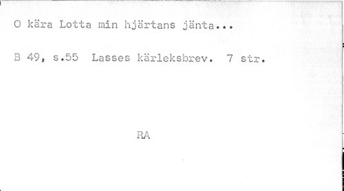 //// O kära Lotta min hjärtans jänta... //// ¦ ¦ //// B 49, s.55 Lasses kärleksbrev. 7 str. //// RA //// l ////