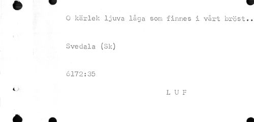 //// O kärlek ljuva laga som finnes i vårt bröst.. Svedala (Sk) //// 'f //// 6172:35 //// 1 L U F //// « ////