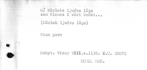 //// t • //// OT Kärleks ljufva låga som finnes i vårt bröst... //// (Kärlek ljufva låga) Utan prov //// \ //// ¦ //// Hr * //// Mskpt. Visor VIII.s. 1139. E.U. 32072 //// NORD. MUS. ////