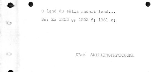 //// O land du sälla andars lancl... Se: Zz 1852 g; 1853 f; 1861 c; //// / //// KB: s SKILLINGTRYCICSREG. ////
