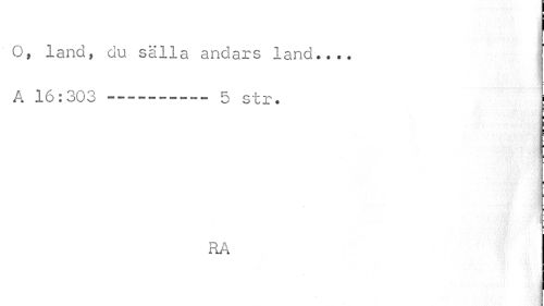 //// O, land, du sälla andars land... A 16:303 --- 5 str. //// RA ////