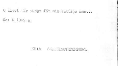 //// I //// I //// O livet här tungt för mig fattige man... //// i //// Se: N 1902 a, j //// ¦ //// ¦ //// i //// i ¦ //// ¦ //// i l //// KB:s SKILLINGTRYCKSREG. ////