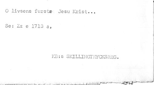 //// O livsens furste Jesu Krist... //// < //// 1 //// Se: Zz e 1713 a, //// i //// KB:s SKILLINGTRYCKSREG. —___ , ___--- ////