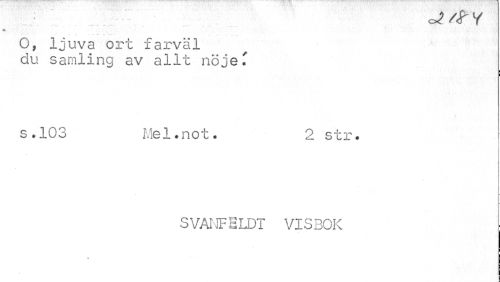 //// . i - ... , * //// I //// O, ljuva ort farväl du samling av allt nöje T //// i i //// S.103 Mel.not. 2 str. //// SVANFELDT VISBOK ////
