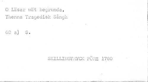 //// \ //// O Läsår wät begrunda, j //// Thenna Tragedisk Sångh //// v //// ' l //// I //// 68 a) S. //// j //// • < ' I //// i //// SKILLINGTRYCK FÖRE. 1700. //// I //// \ ////