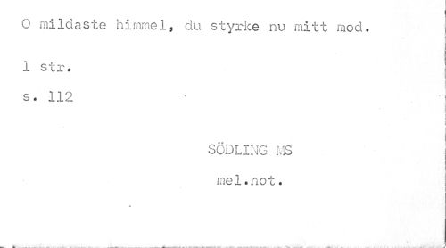//// I //// 0 mildaste himmel, du styrke nu mitt mod. //// •t //// 1 str. //// i //// i //// s * 'jl X i //// i ¦ //// i //// SÖDLIIMG MS mel.not. //// ( //// v ////