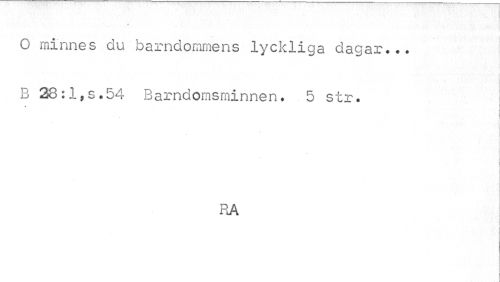 //// r //// O minnes du barndommens lyckliga dagar... B 38:l,s.54 Barndomsminnen. 5 str. //// i | //// j //// RA //// I ////