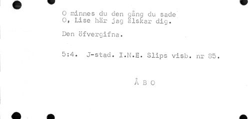//// O minnes du den gång du sade O, Lise här jag älskar dig. //// Den öfvergifna. //// 5:4. J-stad. I.N.E. Slips visb. nr 85. //// ÅBO ////