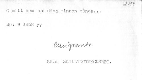 //// • — ' oc /a / //// O mitt hem med dina minnen många... Se: E 1868 yy //// KB:s SKILLINGTRYCKSREG. ////