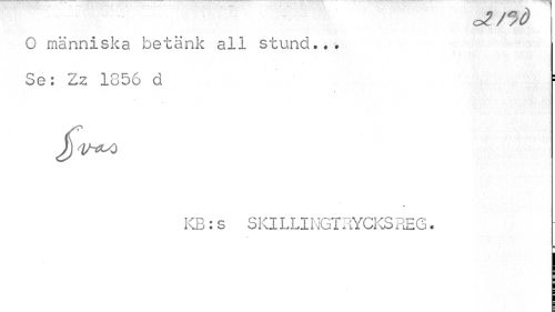 //// o!/">U //// O människa betänk all stund... //// Se: Zz 1856 d ! //// J)<thfC4 //// KB:s SKlLLINGTRYCKSREG. ////