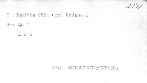//// v: o?/?/ //// O människa tänk uppå ändan... Se: Qc 7 2 d 5 //// Q KB:s SKlLLINGTRYCKSREG. ////