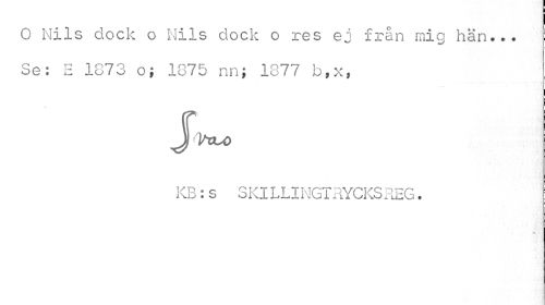 //// O Mils dock o Nils dock o res ej från mig hän... Se: E 1373 o; 1875 nn; 1877 b,x, //// jVeu> //// KB': s S Kl LLI NGT RYCKS REG. ////