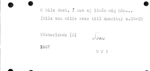 //// O Nils dock, i res ej ifrån mig hän... (Nils som ville resa till Amerika) s.20-22 //// Västerlanda (B) i //// 1667 //// V F F • //// » ////