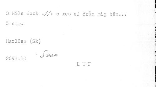 //// i //// O Nils dock ://: o res ej från mig hän... //// \ //// 5 str. ; //// i ¦ //// Ilarlösa (Sk) j //// 2698 :10 ^ ^^ //// L U F i ////