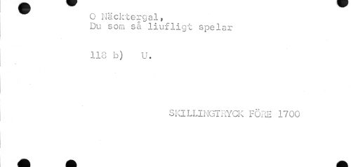 //// O Nä c let er g al, //// Du som så liufligt spelar 118 b) U. //// t //// SKILLIMGTRYCK FÖRE 1700 ////