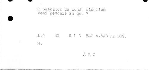 //// O pescator de lunda fidelium Veni pescare in qua ? //// 1-4 Hl S L S 542 s.543 nr 309. N. //// ÅBO ////