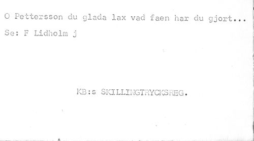 //// j //// O Pettersson du glada lax vad faen har du gjort... Se: F Lidholm j //// » //// KB:s SKILLIHGTEYCKSREG. //// fr //// % i ////