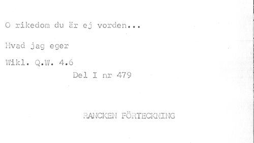 //// O rikedom du är ej vorden... j //// Hvad jag eger Wikl. Q.W. 4.6 //// Del I nr 479 //// RANCKEN FÖRTECKNING ////