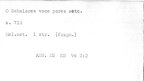 //// O Scholares voce pares eétc. s * 713 //// Mel.not. 1 str. (fragm.) //// ARW. MS KB Vs 2:2 //// i ////
