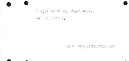 //// O själ om du ej något ser... oe: Zz 17 77 a, //// KB:s SKlLLINGTRYCKSREG. ////