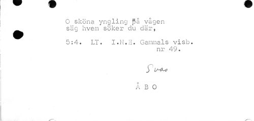 //// O sköna yngling på vågen ^^ säg hvem söker du där, //// 5:4. LT. I.N.E. Ganimals visb. //// nr 49. //// ÅBO //// v-r---^--, ////