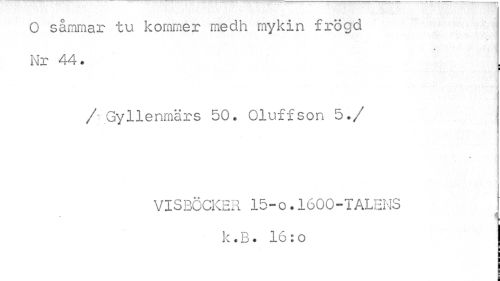 //// O såmmar tu kommer medh mykin frögd //// Nr 44. . //// i //// / Gyllenmärs 50. Oluffson 5./ //// VISBÖCKER 15-0.1600-TALENS //// 4 //// k.B * 16: o ////