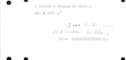 //// O stanna o stanna ciu vind... Se: E 1878 p3 //// ... _..._...J.UA..Ä CÉdt ___- //// KB:s SKILLINGTRYCKSREG. ////