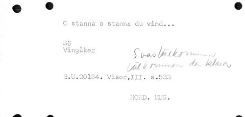 //// O stanna o stanna du vind... //// oo //// Vingåker C Ii: , //// 3 u^o (/t t k. i * - //// 2.U.20184. Visor,III. s.033 //// NORD. MUS. ////