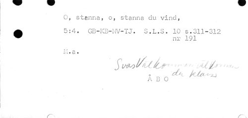//// O, stanna, o, stanna du vind, //// A 5:4. GB-KB-NV-TJ. S.L.S. 10 s.311-312 //// ~ nr 191 //// f\ ¦] n //// iVi « Ca * //// o ¦ fcj.ft • , i //// A B O //// r- ////