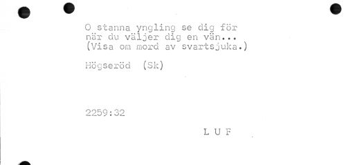 //// O stanna yngling se dig för när du väljer dig en vän... (Visa om mord av svartsjuka.) //// Ho g se ro d t-Sk) //// 2259:32 //// LUF //// T ////