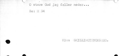 //// O store Gud jag faller neder... //// Se: H 34 //// A KB:s SKILLINGTRYCKSREG. ////