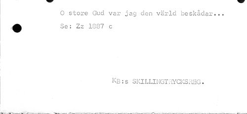 //// O store Gud var jag den värld beskådar... i^k Se; Zz 1887 c //// KB:s SKILLINGTRYCKS REG. ////