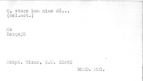 //// O, store kon mine då... (mel.not.) //// Hs //// Bergsjö //// v //// Mskpt. Visor, E.U. 32692 //// NORD. MUS. ////