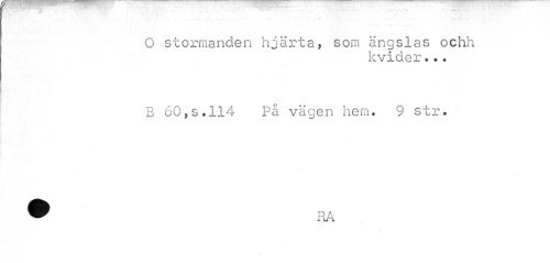 //// O stormanden hjärta» som ängslas ochh //// kvider... //// B 60,s.114 På vägen hem. 9 str. ////