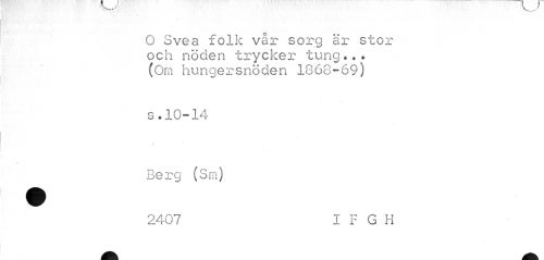 //// O Svea folk vår sorg är stor och nöden trycker tung... (Om hungersnöden 1868-69) //// s.10-14 //// \ //// Berg (Sm) //// 2407 I F GH ////