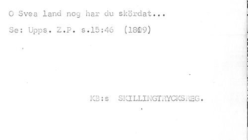 //// I //// O Svea land nog har du skördat... i //// Se: Upps. Z.P. s. 15:46 (18<D9) //// ! ¦ //// / //// i //// l //// KB: s SKILLINGTRYCKSPJHG. j //// % ////