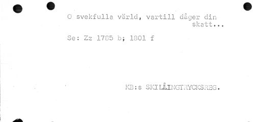 //// O svekfulla värld, vartill dager din //// S k 8 C t t « i //// Se: Zz 1785 b; 1801 f //// KB:s SKl illNGTRYCKSREG. ////