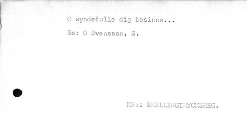 //// t //// O syndefulle dig besinna... Se: O Svensson, S. //// KB:s SKlLLINGTRYCKSREG. //// t ////