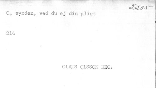 //// O, synder, ved du ej din pligt //// ¦ I //// 216 //// OLAUS OLSSON REG. ////