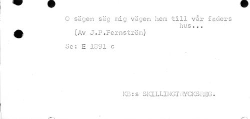 //// O säoen säcj mig vägen hem till vår faders //// w' w" -S //// hus.,. //// i,av J .P.Fernstrorn) //// Se: E 1391 c //// KB: s SKlLLINGTRYCKSREG. ////