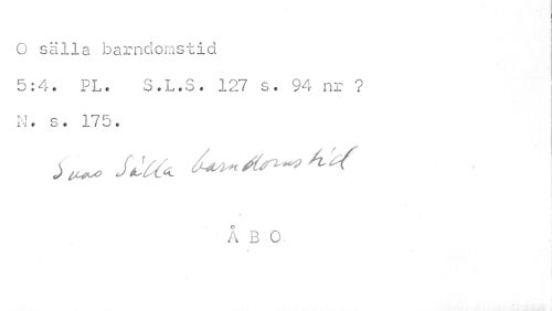 //// O sälla barndomstid //// 5:4. FL. S.L.S. 127 s. 94 nr ? //// 1\T. s. 175. //// ÅBO- ////