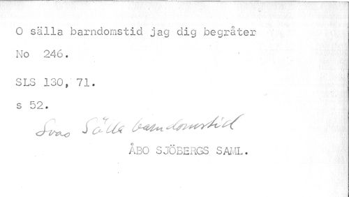 //// O sälla barndomstid jag dig begråter No 246. //// SLS 130, 71. s 52. //// ÅBO SJÖBERGS SAML. ////