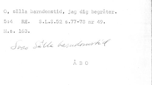 //// O, sälla barndomstid, jag dig begråter. //// 5:4 RE. S.L.S.52 s.77-78 nr 49. N.s. 163. //// ? //// O //// A B 0 //// I ; ////